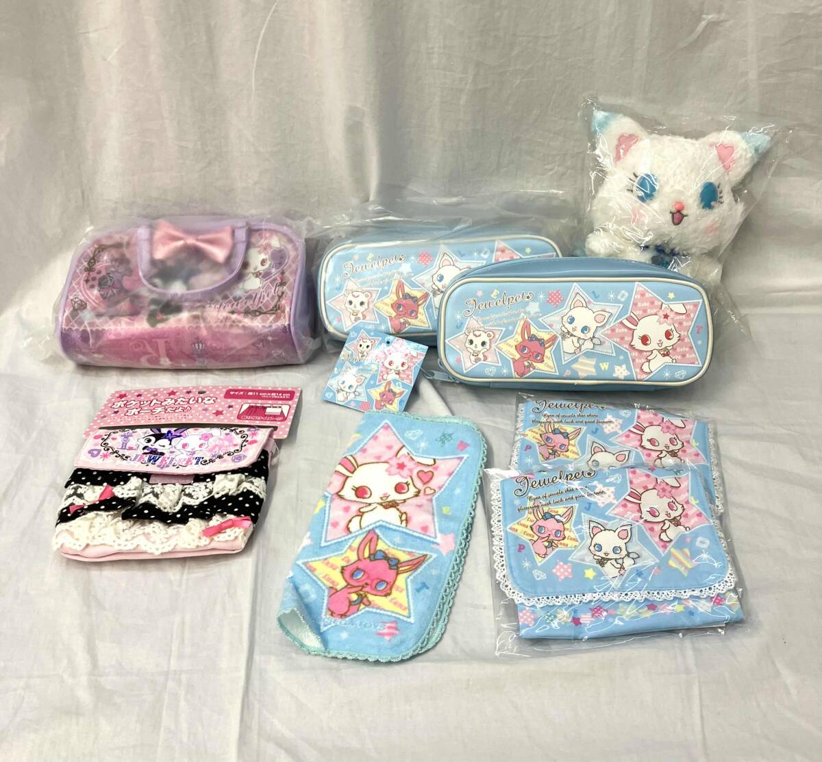 - [タグ付]SANRIO サンリオ ジュエルペット マスコット ペンケース ポケットポーチ ハンカチ ピンク ブルー 8点セット 店舗受取可