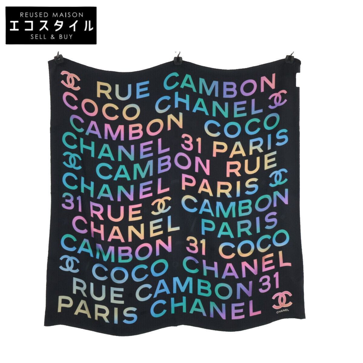 - 新品同様 CHANEL シャネル AA9719 ココマーク ロゴ シルク スカーフ ブラック/マルチカラー レディース