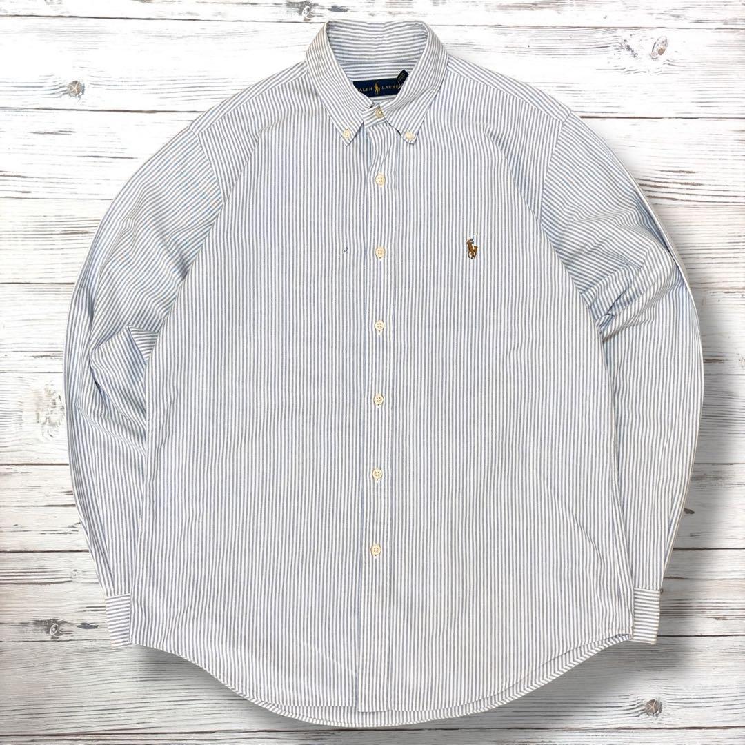 - 《希少》RALPH LAUREN☆BD長袖シャツ M 刺繍 ブルー NS612