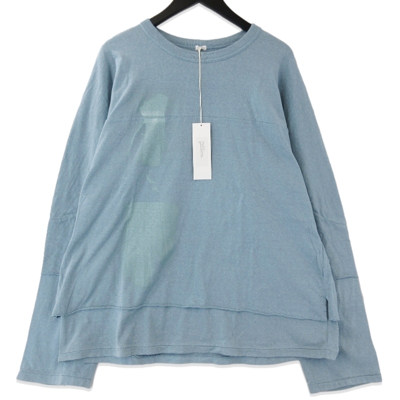 > 未使用 Fujimoto フジモト Veiled L/S&H/S FJ24F-11-001 長袖Tシャツ レイヤード ヴィンテージ加工 ブルー 2 タグ付き 71013984