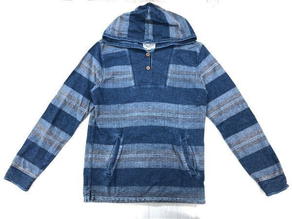 - Lucky Brand ラッキーブランド レトロ アメカジ サーフ 古着 ボーダー ヘンリーネック インディゴ染め カットソー パーカー メンズ S 青