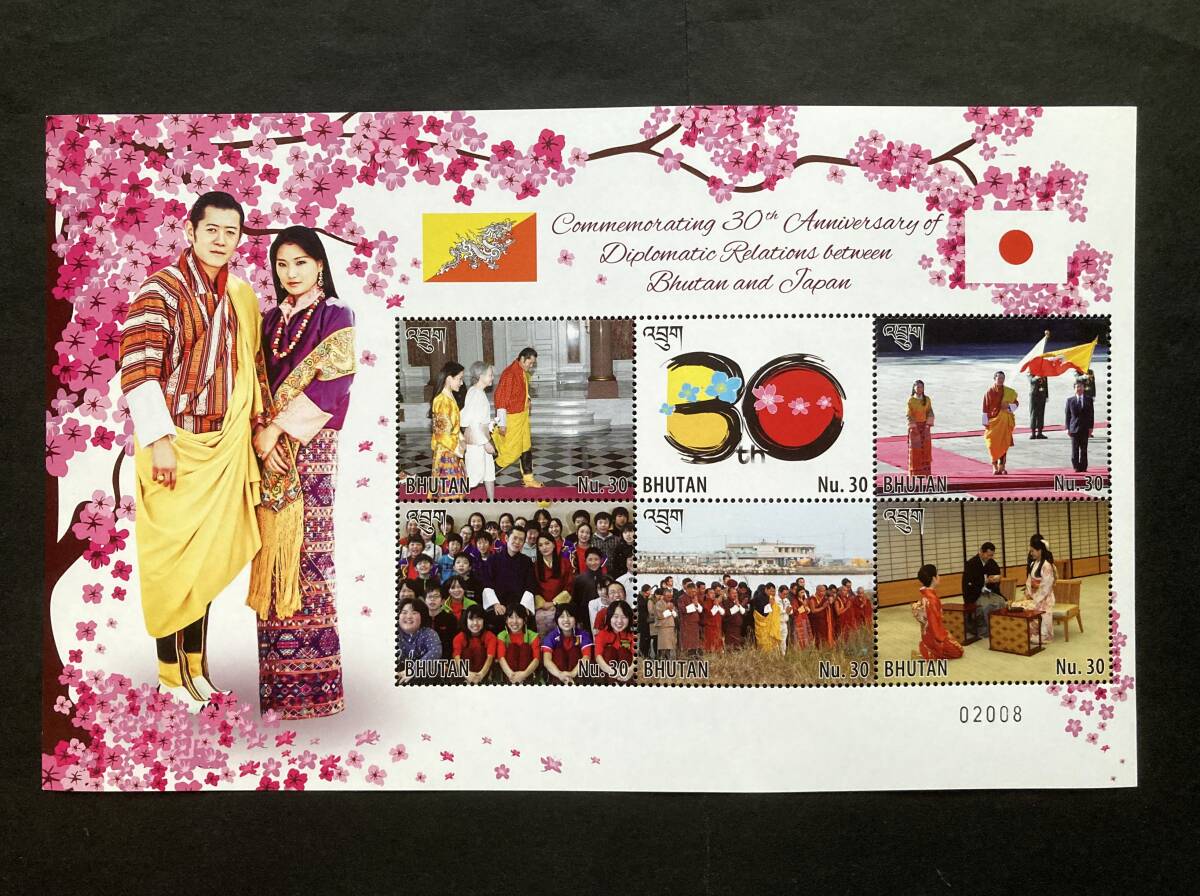 - 外国切手: ブータン切手 「日本との外交関係30周年」 6種m/s 未使用