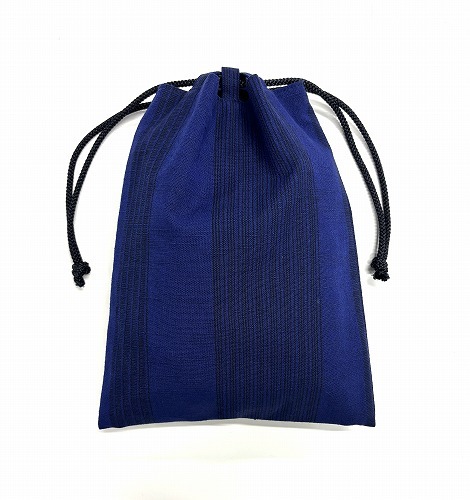 - [江戸てん]信玄袋 御朱印帳袋 合切袋 久留米織スラブ生地 綿100% 巾着 青縞