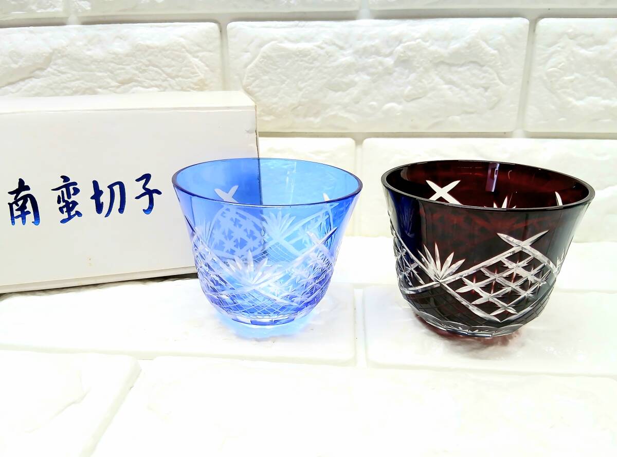 - n404 切子グラス ぐい呑み『南蛮切子』酒器 (未使用)