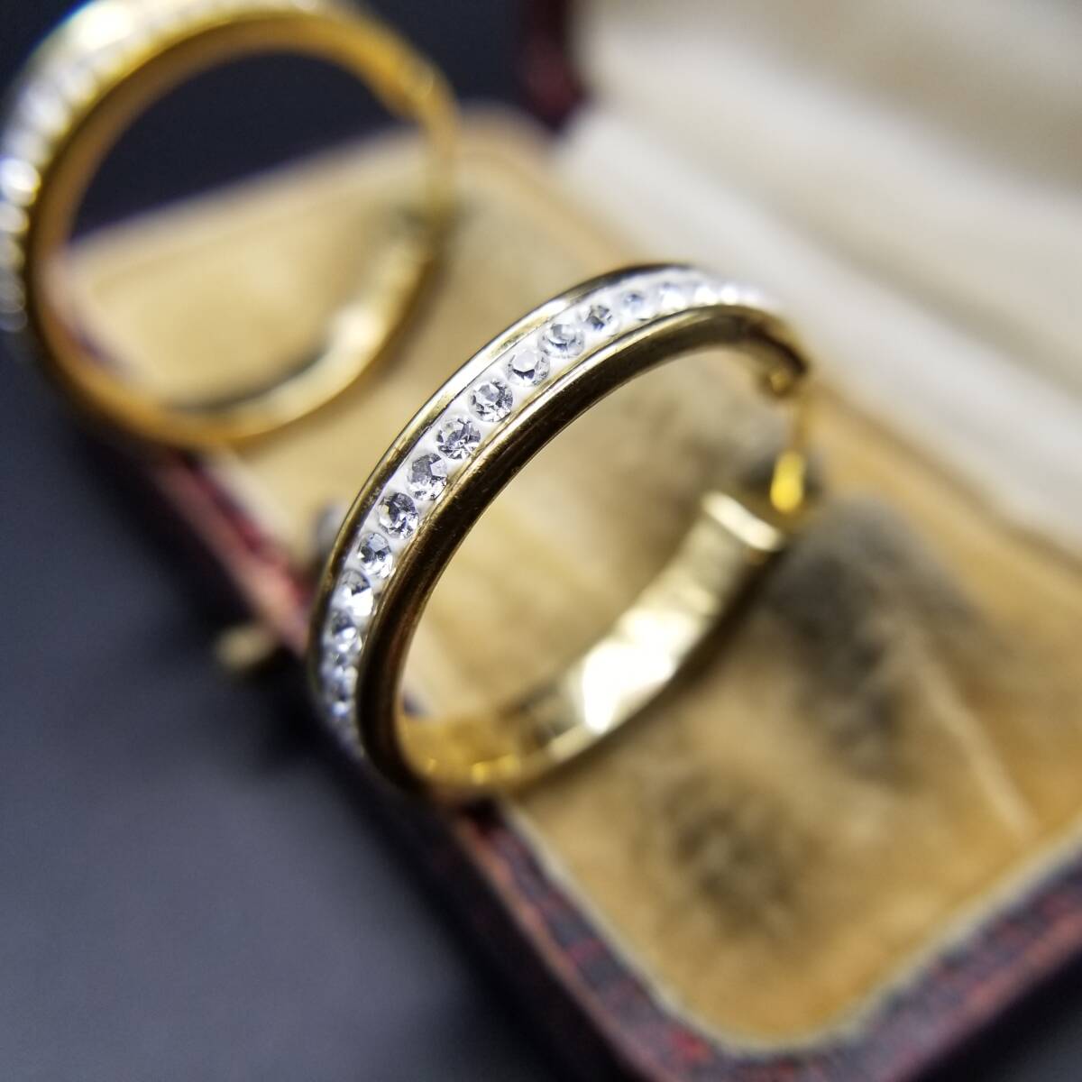 > WJ刻印 クリアストーン インレイ エタニティ 925 シルバー ヴィンテージ フープ ピアス 銀 K9 ゴールド金張り ゴージャス エレガント Y25-G