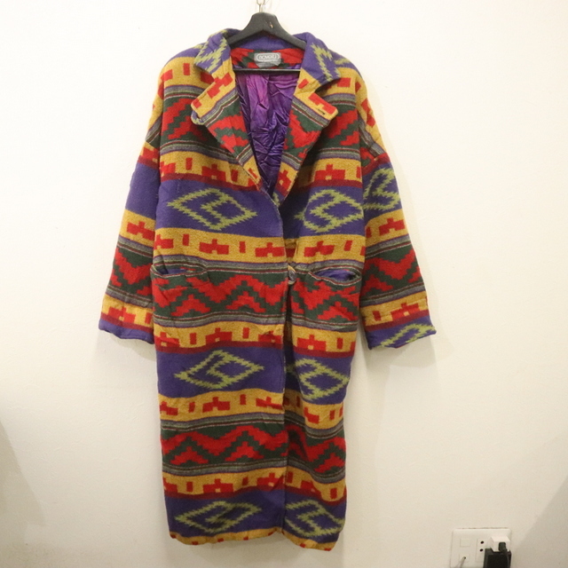 > q179 90sビンテージ NOVEITI ウールコート■1990年代製 約Lサイズくらい レディース マルチカラー ネイティブ ロングコート アメカジ 古着