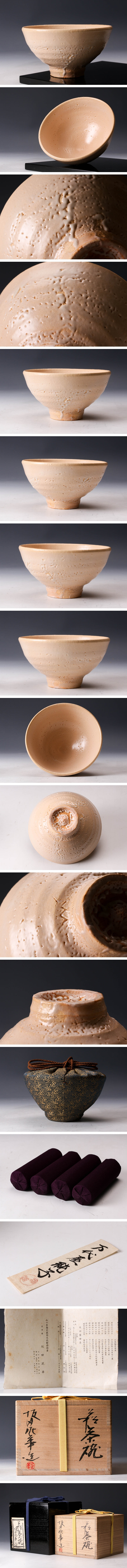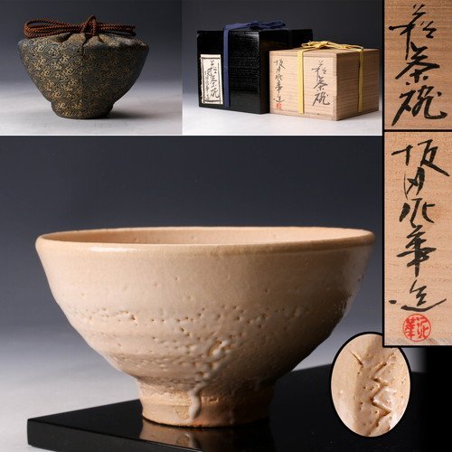 【佳香】坂田泥華 萩茶碗 共箱 二重箱 仕覆(万代屋緞子) 栞 茶道具 本物保証