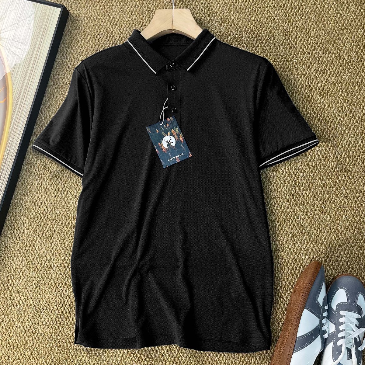 - 半袖 ポロシャツ カナダ製造 シルク混 柔らかい ストライプ カットソー トップス ビジネス フォーマル スポーツ ゴルフ 高級 通勤 SIZE:XL