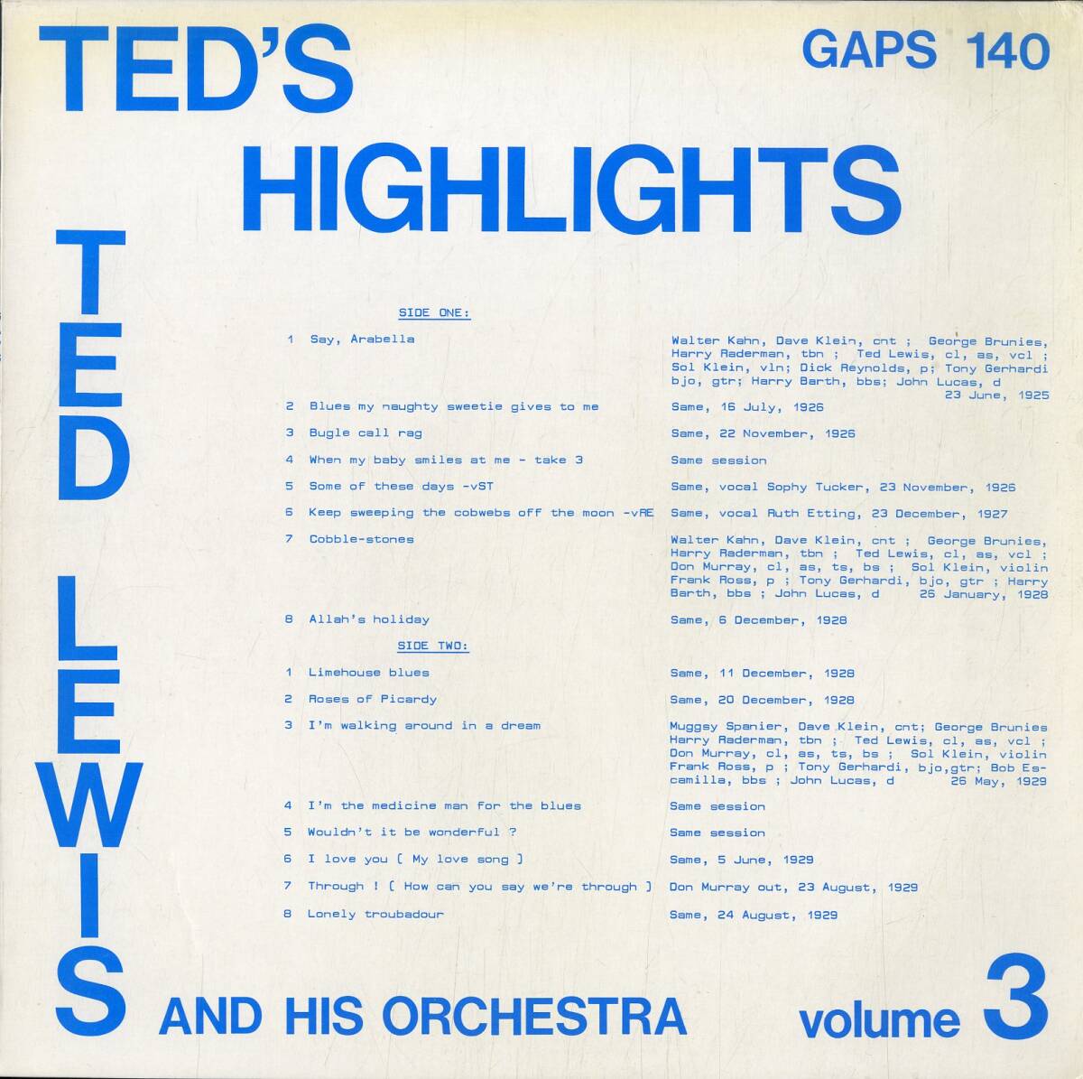 A00490992/LP/テッド・ルイス「Teds Highlights Volume 3」