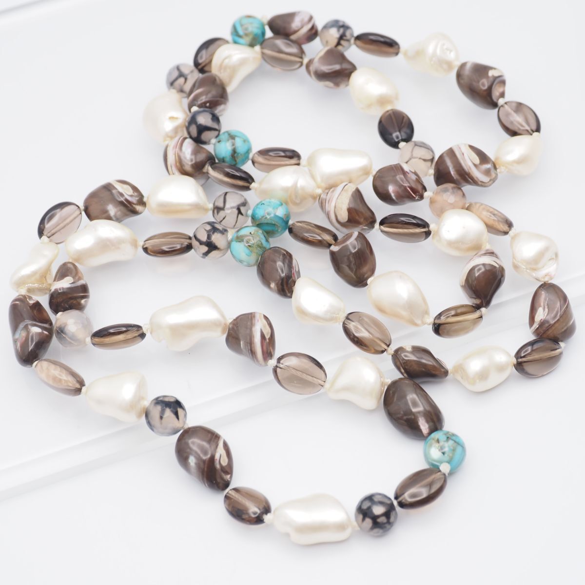 - H499 バロックパール 真珠 スモーキークォーツ 等 カラーストーン ネックレス 大ぶり デザイン 6月誕生石