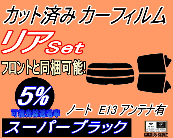 - カーフィルム スーパーブラック カット済み リアセット ノート E13 アンテナ有 (s) スモーク ガラスフィルム セット リヤー E13 ニッサン