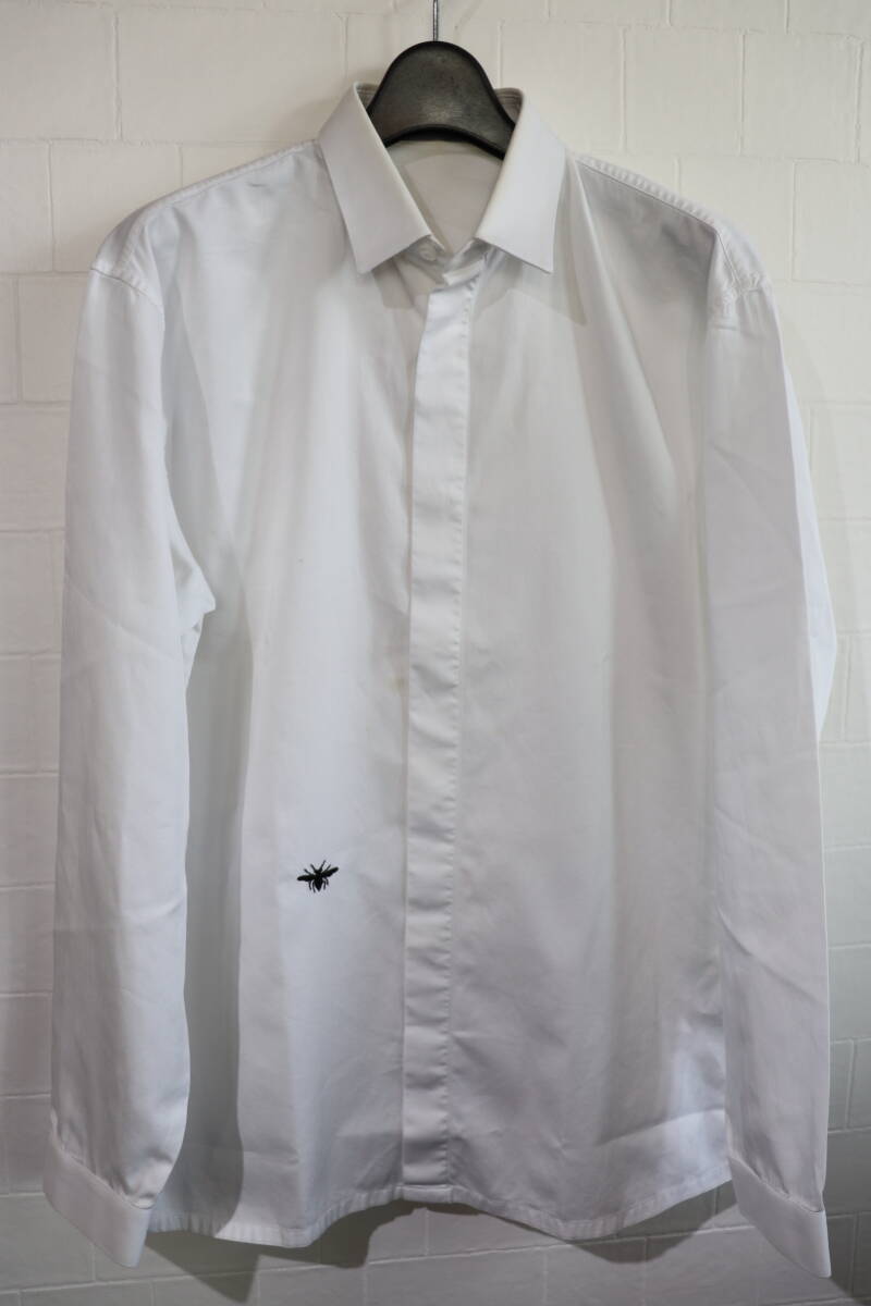 > 03AW 即決 Dior HOMME ディオールオム Hedi Slimane エディ Luster ラスター期 3HH1050403 BEE刺繍 比翼仕立てシャツ 長袖ドレスシャツ 38