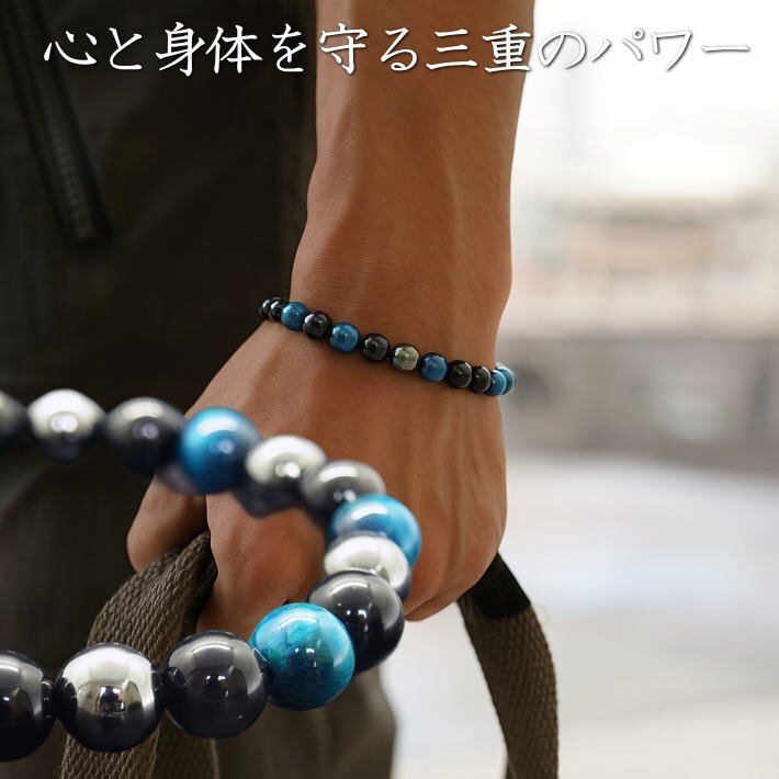 > パワーストーン ブレスレット ブルータイガーアイ ブラックオブシディアン 黒曜石 ヘマタイト 天然石 7986660 ワンカラー 新品