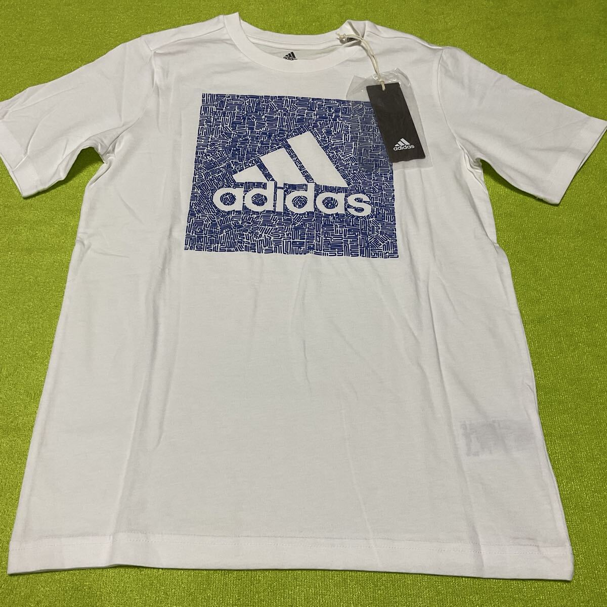 > アディダス 160サイズ 新品2690円 速乾 ドライ ブルー 半袖Tシャツ ホワイト