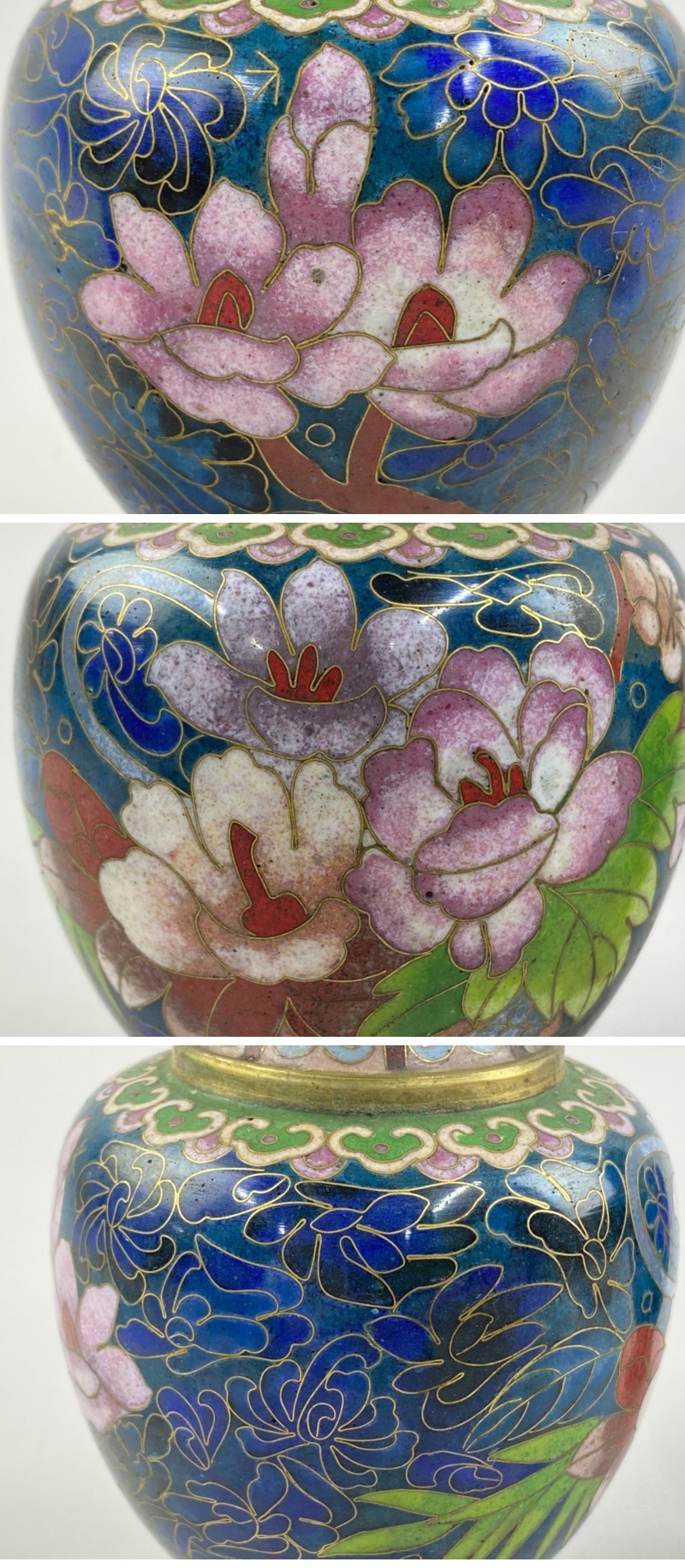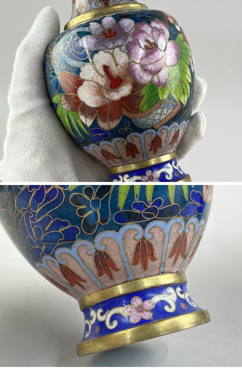 > ac551 中国美術 銅七宝 花瓶 2点 一対 高さ16cm 花文 七宝 景泰藍 花器 飾壺 壷 花生 花入 置物 唐物 中国 古玩