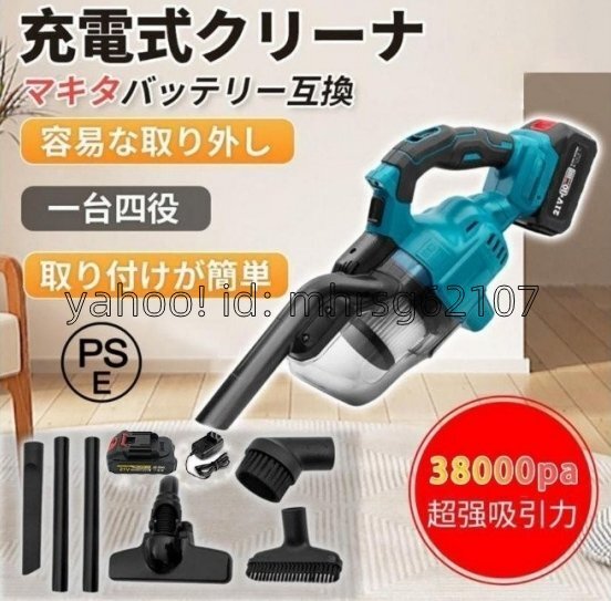 - 掃除機 充電式クリーナ コードレス 業務用 38000Pa 電動集塵機 ブロワー マキタ電池 バッテリー互換対応 小型 4種類吸引 ノズル 軽量