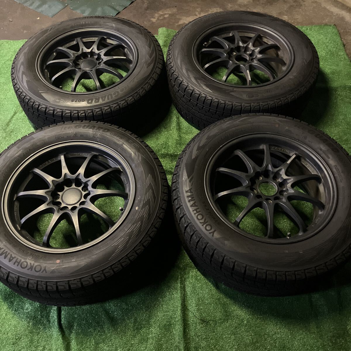 > レイズ ボルクレーシング VR CE28N 7.5J+43 pcd114.3 5H 225/65R17 ヨコハマ アイスガードG075 2022年製 9.5部山(新品時のイボ残り)