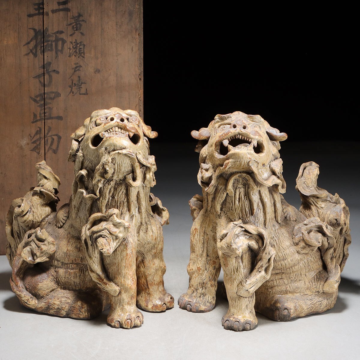 古瀬戸焼 獅子 置物 一対 高さ30.5cm 30cm 合箱の出品です。