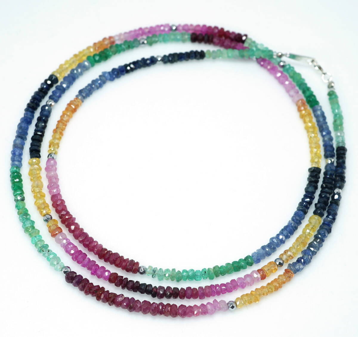 - ▲新品自社製作 天然ルビー サファイア エメラルド 最高級 49.3ct SV 67cm ロングネックレス 宝石 ジュエリー jewelry
