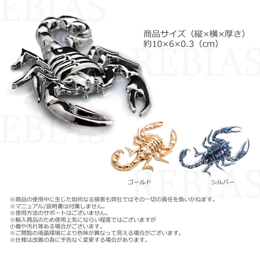- 送料無料 スコーピオン エンブレム 【シルバー】 メタル さそり 蠍 爬虫類 クロカン アウトドア ステッカー カスタム