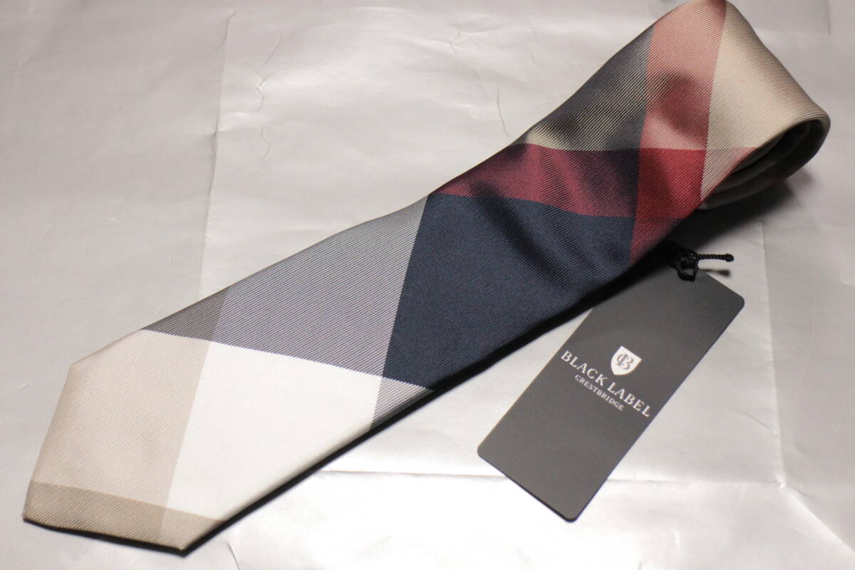 > ブラックレーベルクレストブリッジ新品ネクタイ超モダン華麗ベージュ*ネイビー*レッドチェック極上ツイル織シグネイチャー柄ハンドメイド