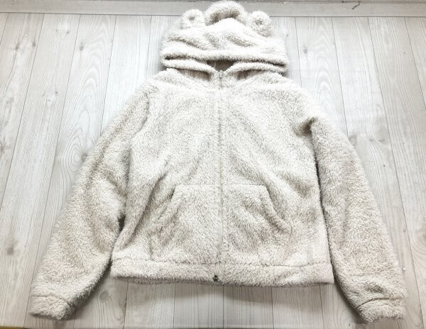 - earth music&ecology アースミュージックアンドエコロジー レディース クマ耳フード付き ボアフリースパーカー F アイボリー