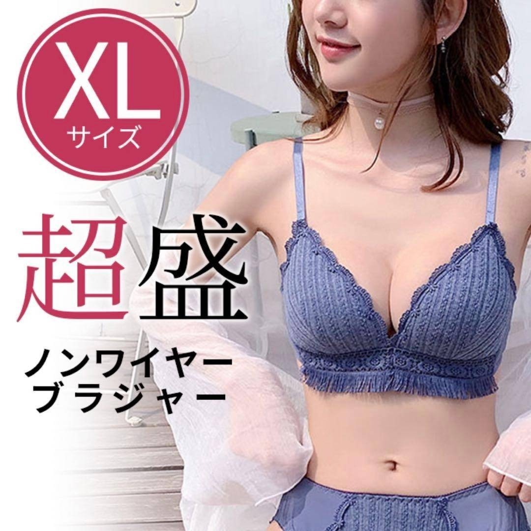 - 新品 レディース ノンワイヤー ブラジャー ナイトブラ ブルー 盛りブラ XL