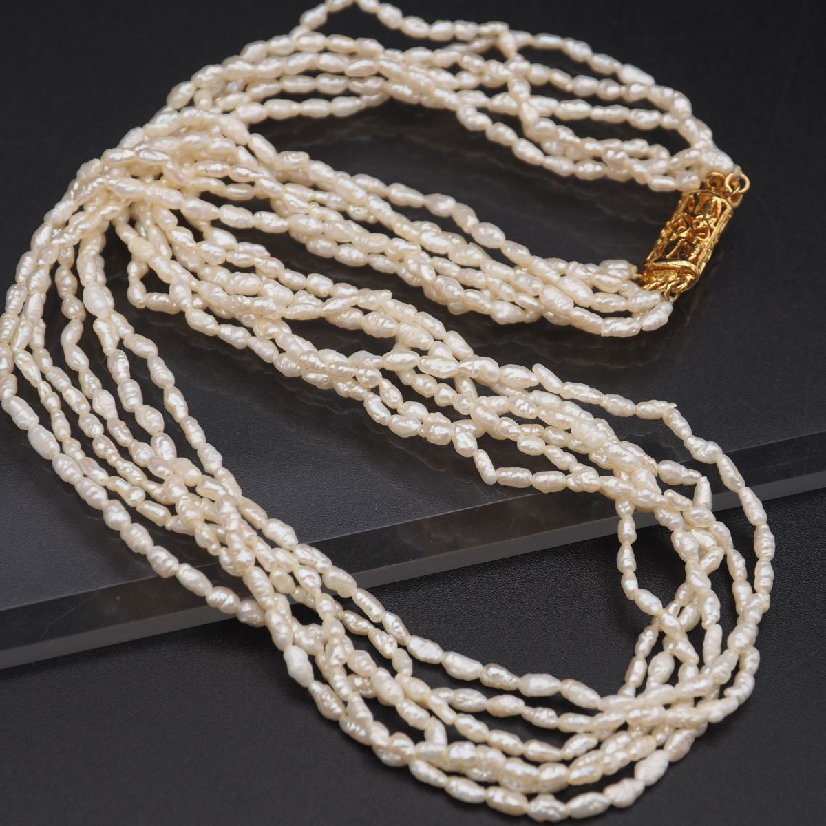 - H083 淡水真珠 パール ネックレス 6連 ゴールド デザイン 6月誕生石