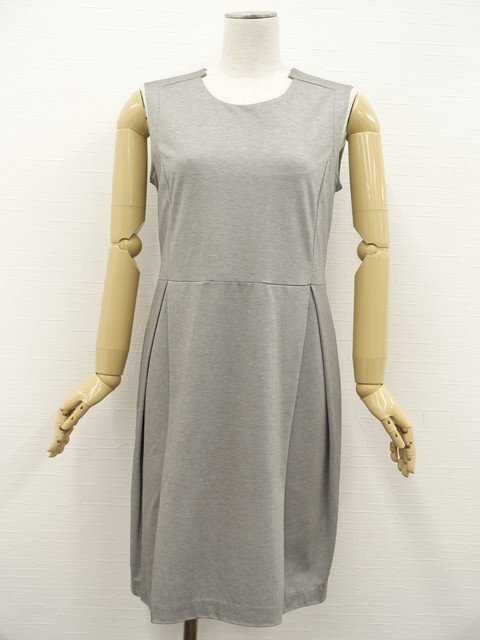 > 美品 リョウコキクチ RYOKO KIKUCHI ひざ丈 Uネック アンダードレス付きノースリーブワンピース 40 グレー杢 【メール便可】