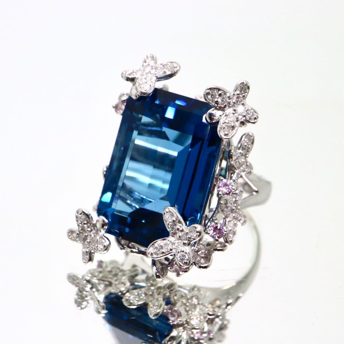 > K14WG!!18.07/0.76ct!!ソ付き!!■天然ブルートパーズ/ダイヤモンドリング■N 約9.7g 約7.5号 #7.5 diamond blue topaz 指輪 ring EG5/ U622
