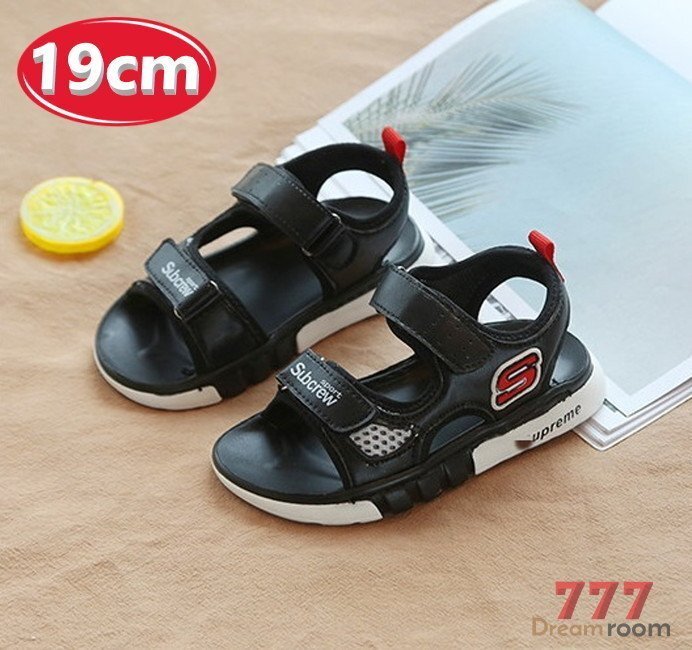 - kids 滑り止め付き!ポイントロゴ スポーティー サンダル 【ブラック 19cm】 韓国子供服 キッズ ビーチサンダル 子供用 女の子