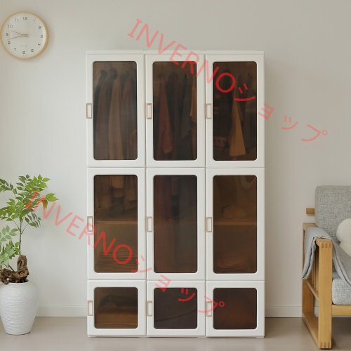 > 【幅104*高さ170cm茶色透明扉】ワードローブ クローゼット 一体折りたたみ式 収納 扉付き 洋服ダンス ハンガーラック 簡単組立 大容量 衣類