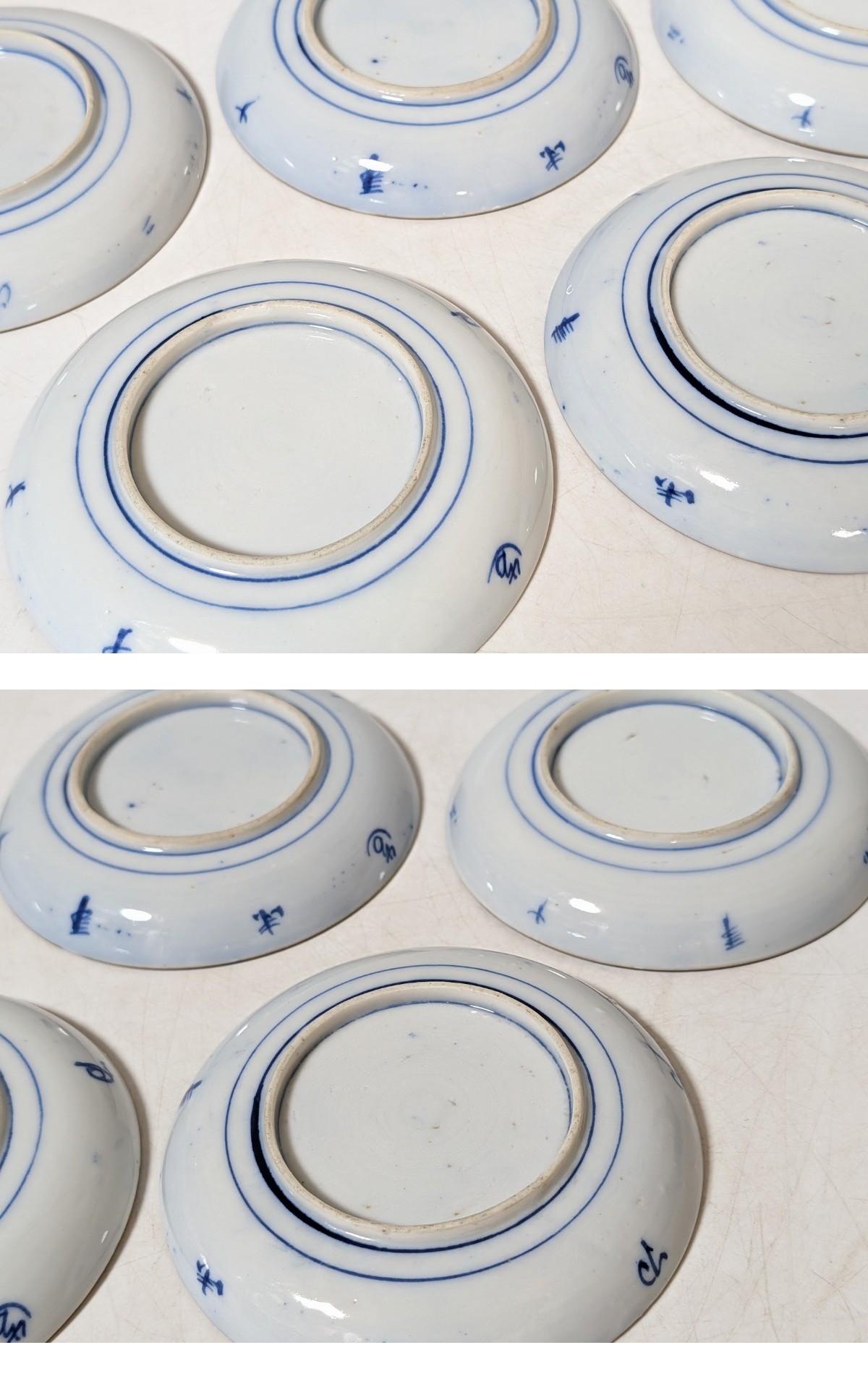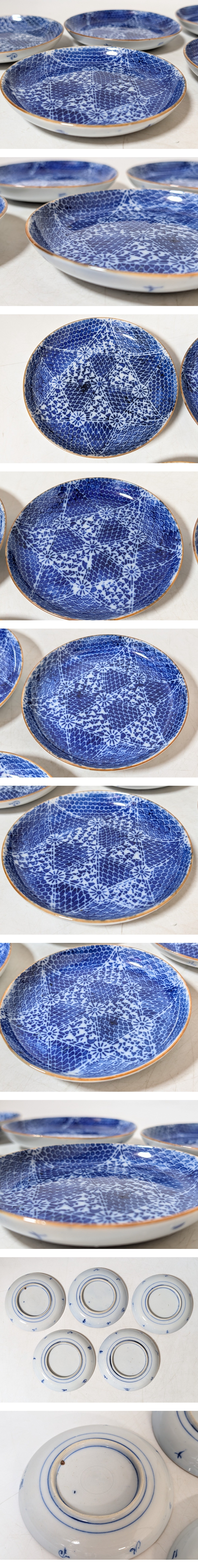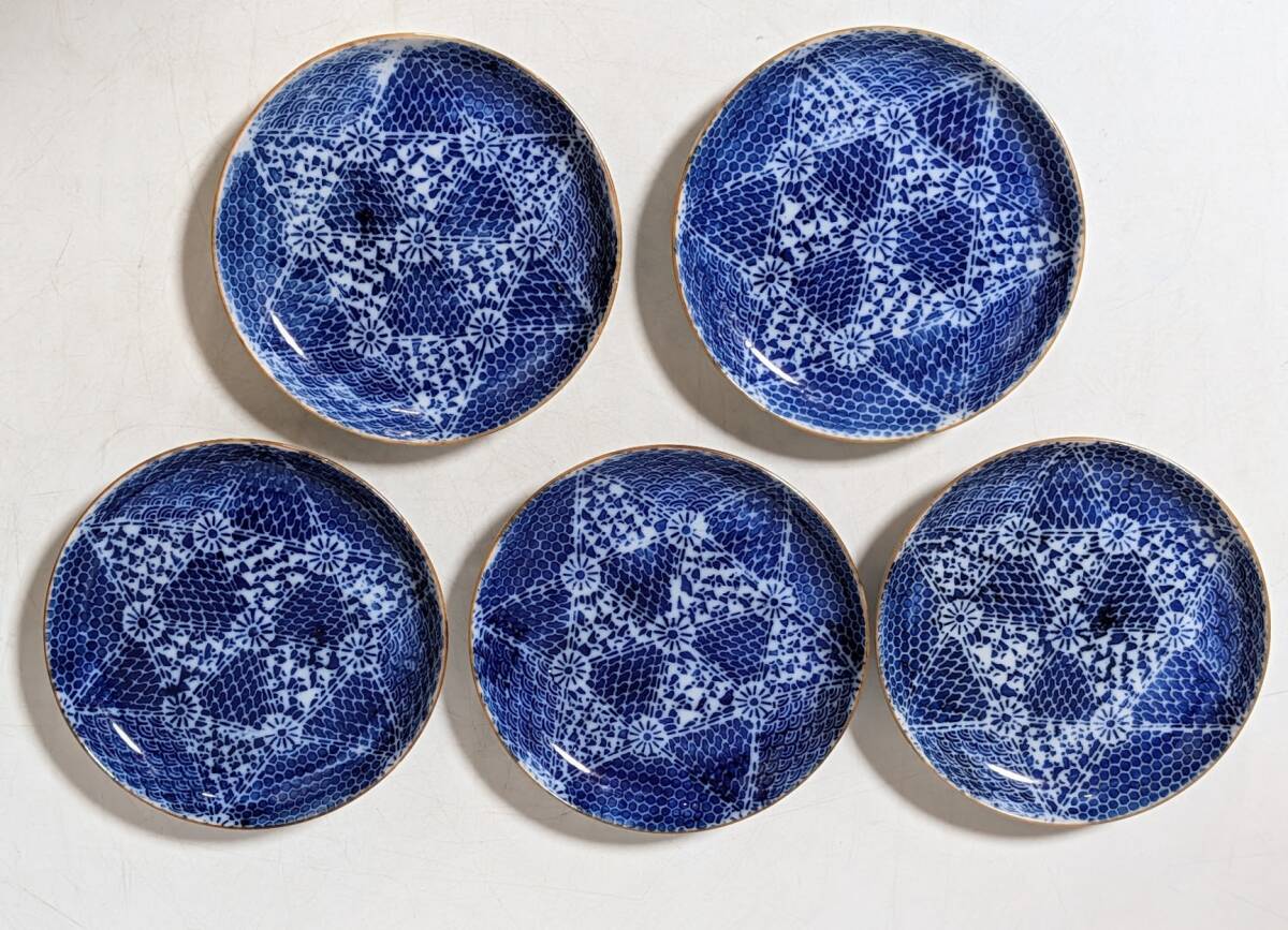 - 470 印判 小皿 図変わり 六芒星 星型多角形 5枚 幾何学模様 波 亀甲
