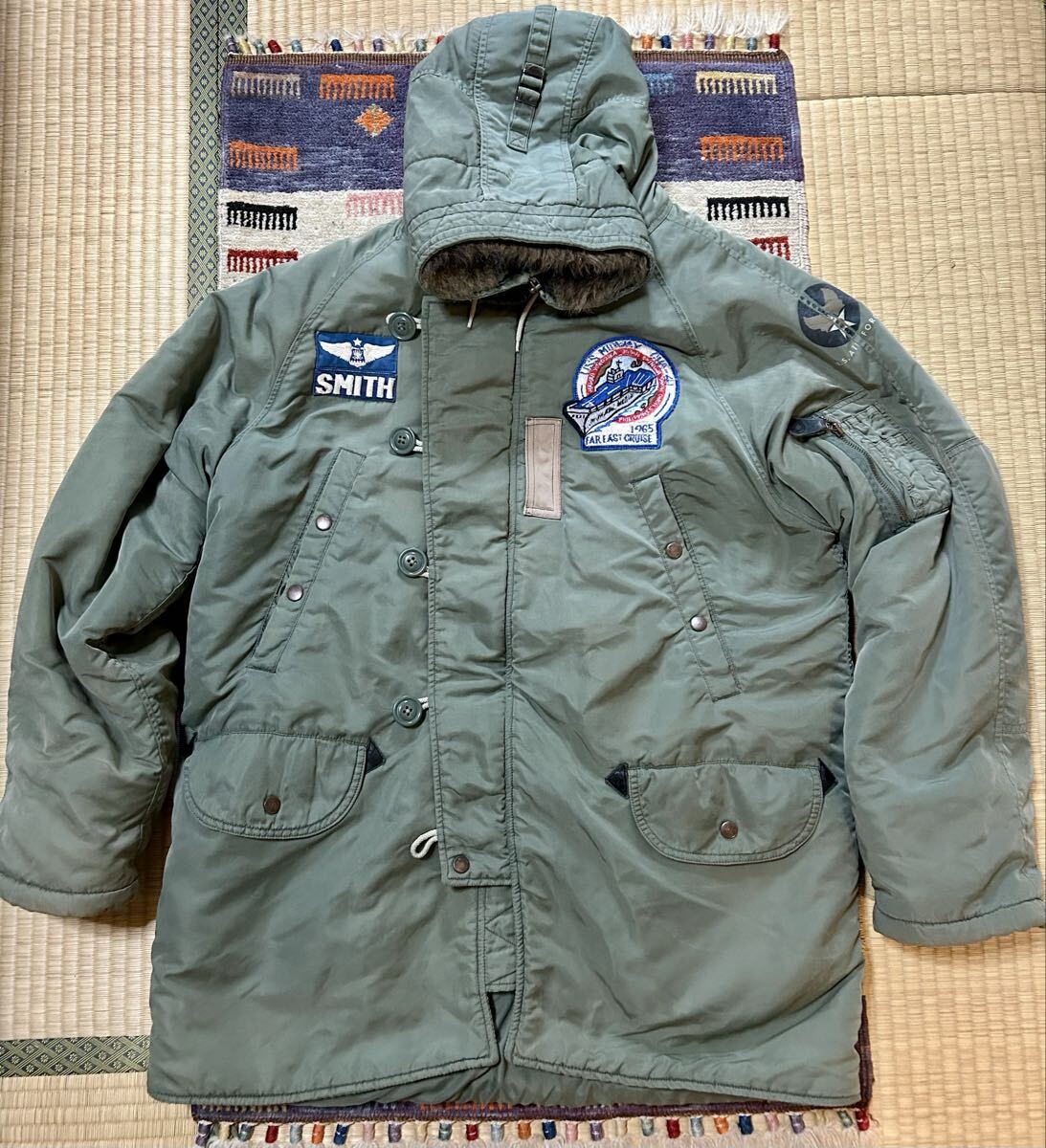 - 1円スタートN-3BN3Bフライトジャケットアメリカ軍ARMY AIR FORCEサイズMワッペン付きアメカジミリタリージャケット