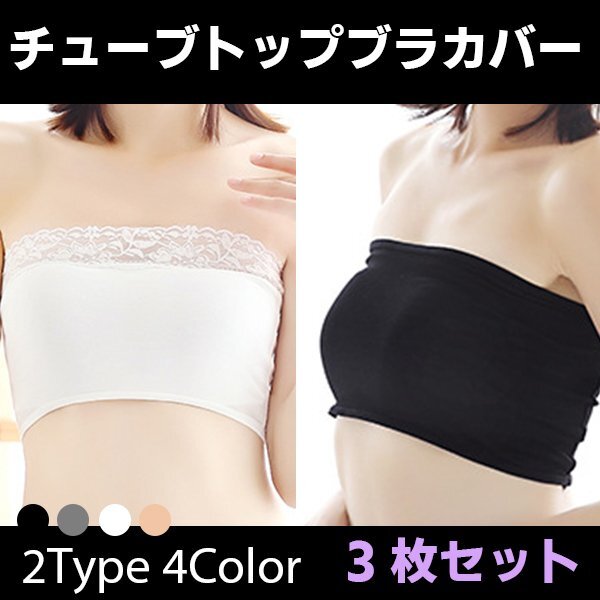 - 送料無料 チューブトップ ブラカバー レース ノーマル 3枚セット!/胸見え防止 伸縮性 薄い カップ無し ノンワイヤー インナー ベアトップ