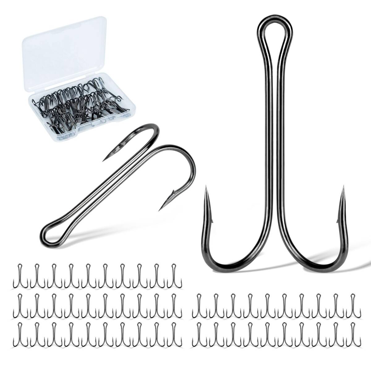 【量と汎用性】50本のダブルフックセット、サイズは12#から5/0まで、各サイズが便利なポータブルボックスにきれいに収納されています。