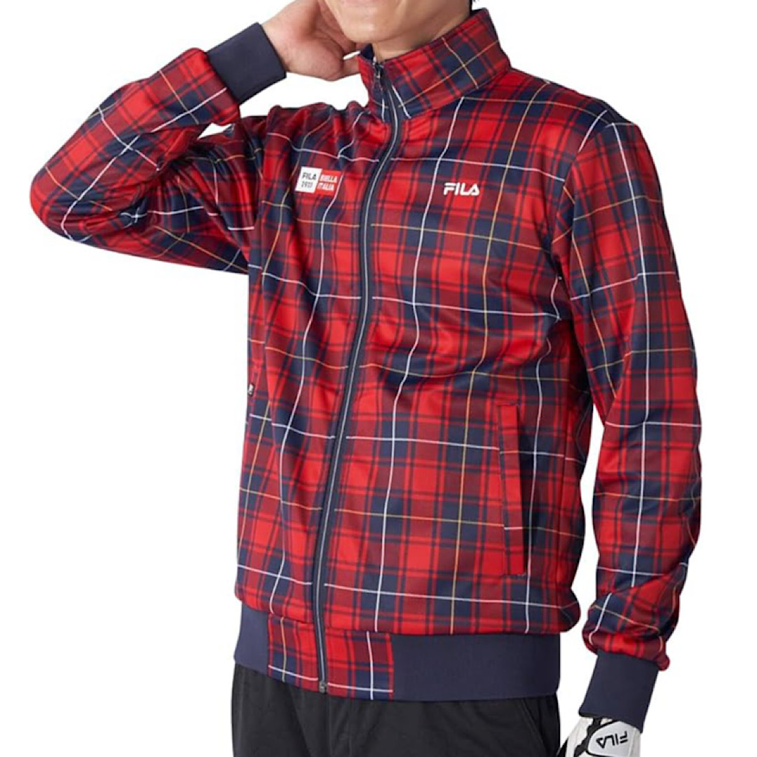 > 新品 フィラ ゴルフ ブルゾン Mサイズ チェック柄 783-209 防寒 防風 保温 定価10,450円 アウター ジャンパー ボンディングブルゾン