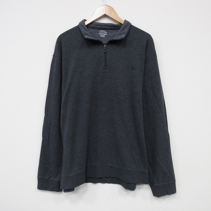 - XL/古着 ラルフローレン 長袖 ブランド ハーフジップ トップス メンズ 大きいサイズ 濃グレー 霜降り spe 25oct30 中古 スエット トレーナ