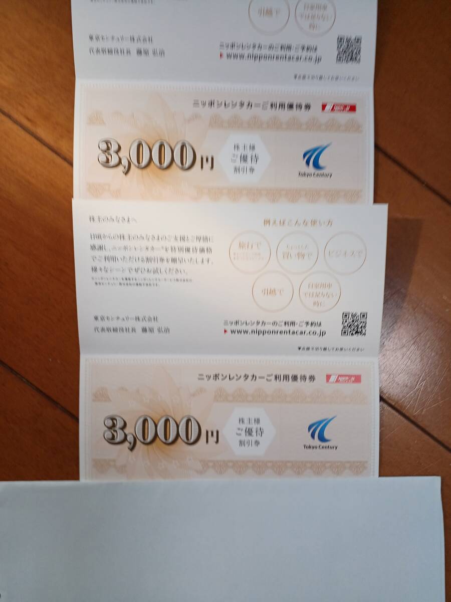 - 東京センチュリー 株主優待 ニッポンレンタカー3,000円割引券2枚 有効期限 2026年6月30日 送料込