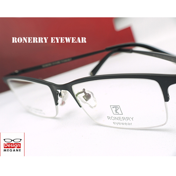 > 即決★眼鏡一式☆度入レンズ込★designメガネ★RONERRY Eyewear Black 純チタン素材 ハーフリム 度付き/度なし/伊達メガネ/ 【メガネ通販