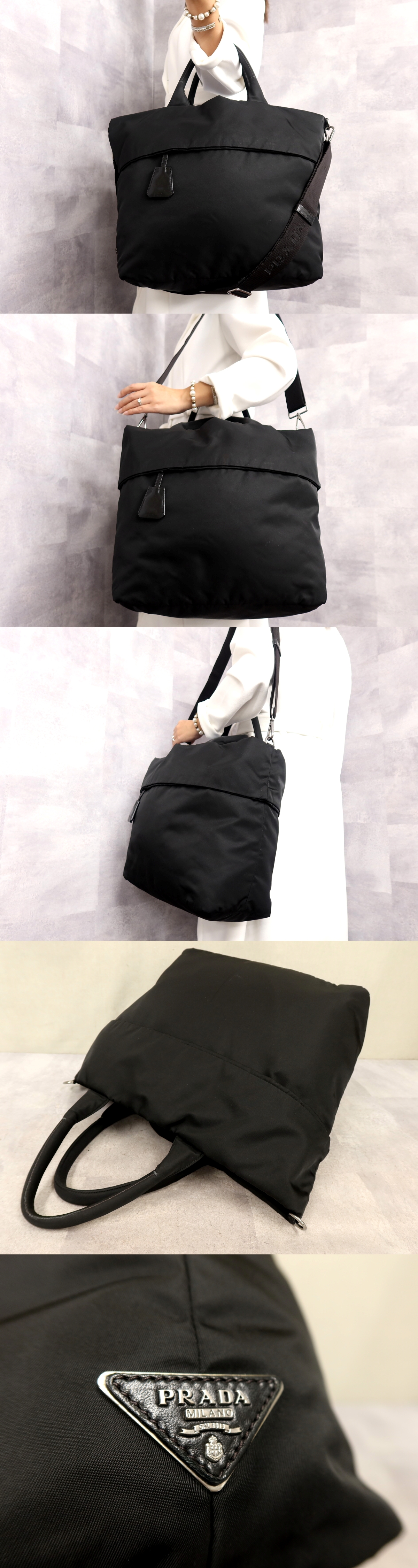 - ●超美品●PRADA プラダ●リバーシブル●ポコノ ナイロン カーフ レザー 本革●2way トート バッグ●黒●シルバー金具●A4 かばん●Js61855