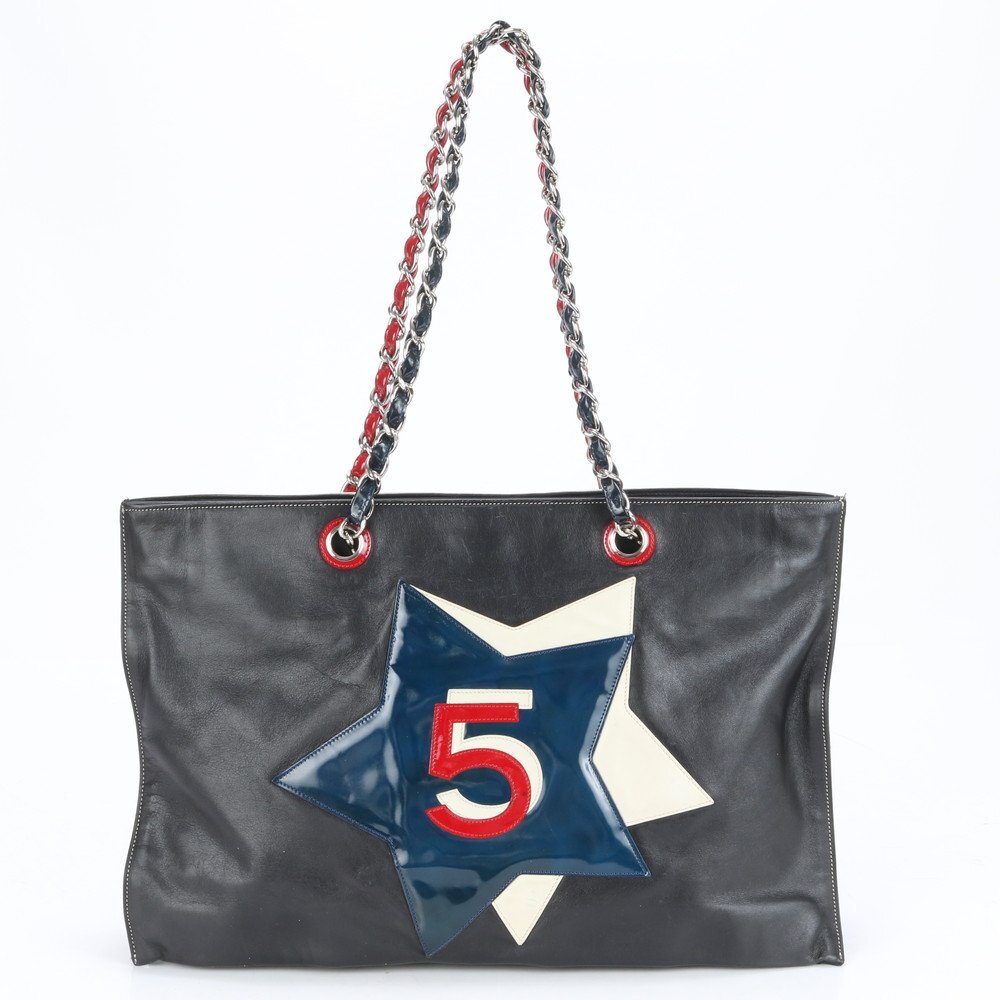 - 1円 極美品 シャネル シリアルシール付 No5 スター トリコロール チェーン レザー ショルダーバッグ 肩掛け トート レディース MMM BV6-1