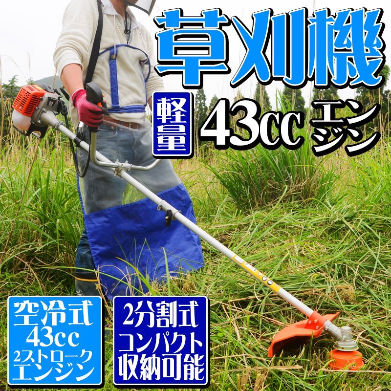 > ハイパワー 2分割可能!草刈機 43cc エンジン式 エンジン刈払機 ナイロンカッター 金属刃付き 両手ハンドル 肩掛式 軽量 コンパクト