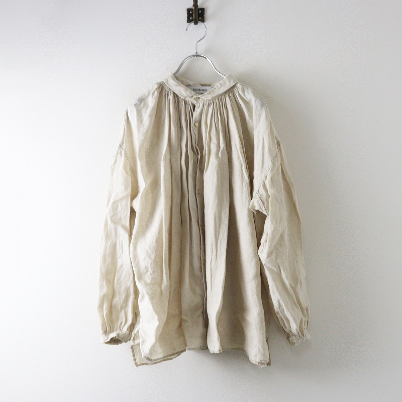 > ヴェリテクール Veritecoeur ST-026L ギャザー リネンアンティークブラウス FREE ベージュ┃麻素材 トップス【2400014671636】