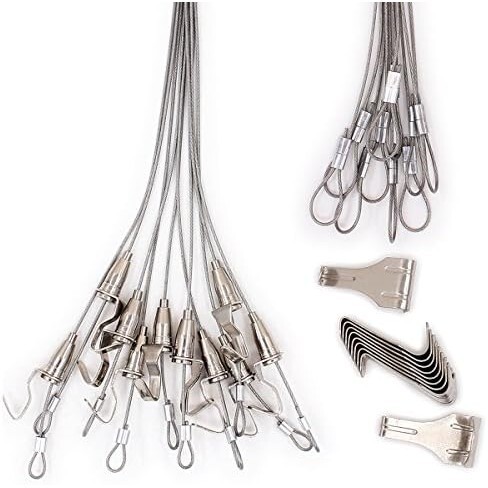> INIBUD ピクチャーレール ワイヤー フック 10本セット ステンレス コーティング 展示用 調節自在 額受 金具 (1m)
