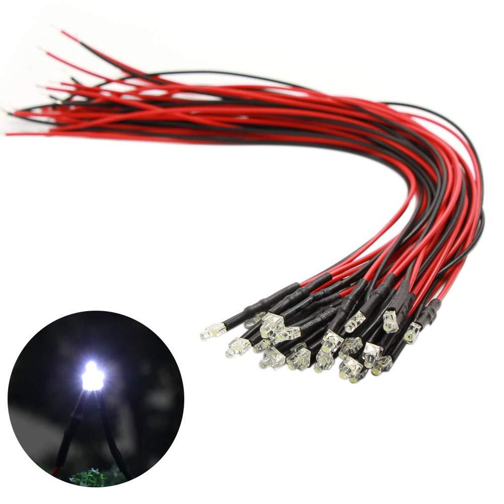 入数:20本入り順方向電圧:12V~18V。順方向電流(代表値typ/最大値max):20mA / 30mA。サイズ:2mm LED,長さは約20cm(L)。抵抗は仮付溶接済み。