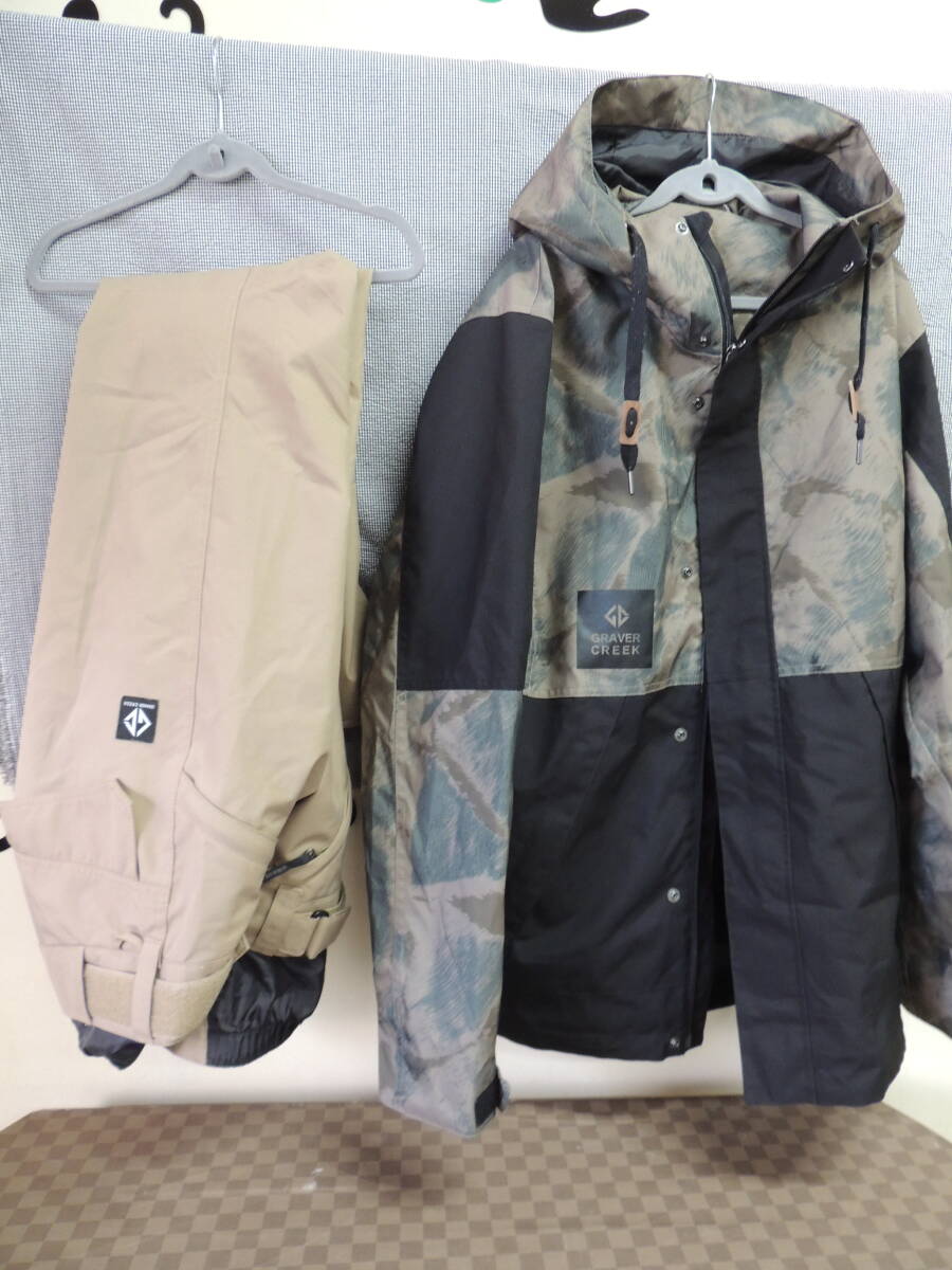 > 【スノボ・ウェア】GRAVER CREEK グラバークリーク ブラック 迷彩 スノーボードジャケット + ボトム ベージュ 上下セット Mサイズ