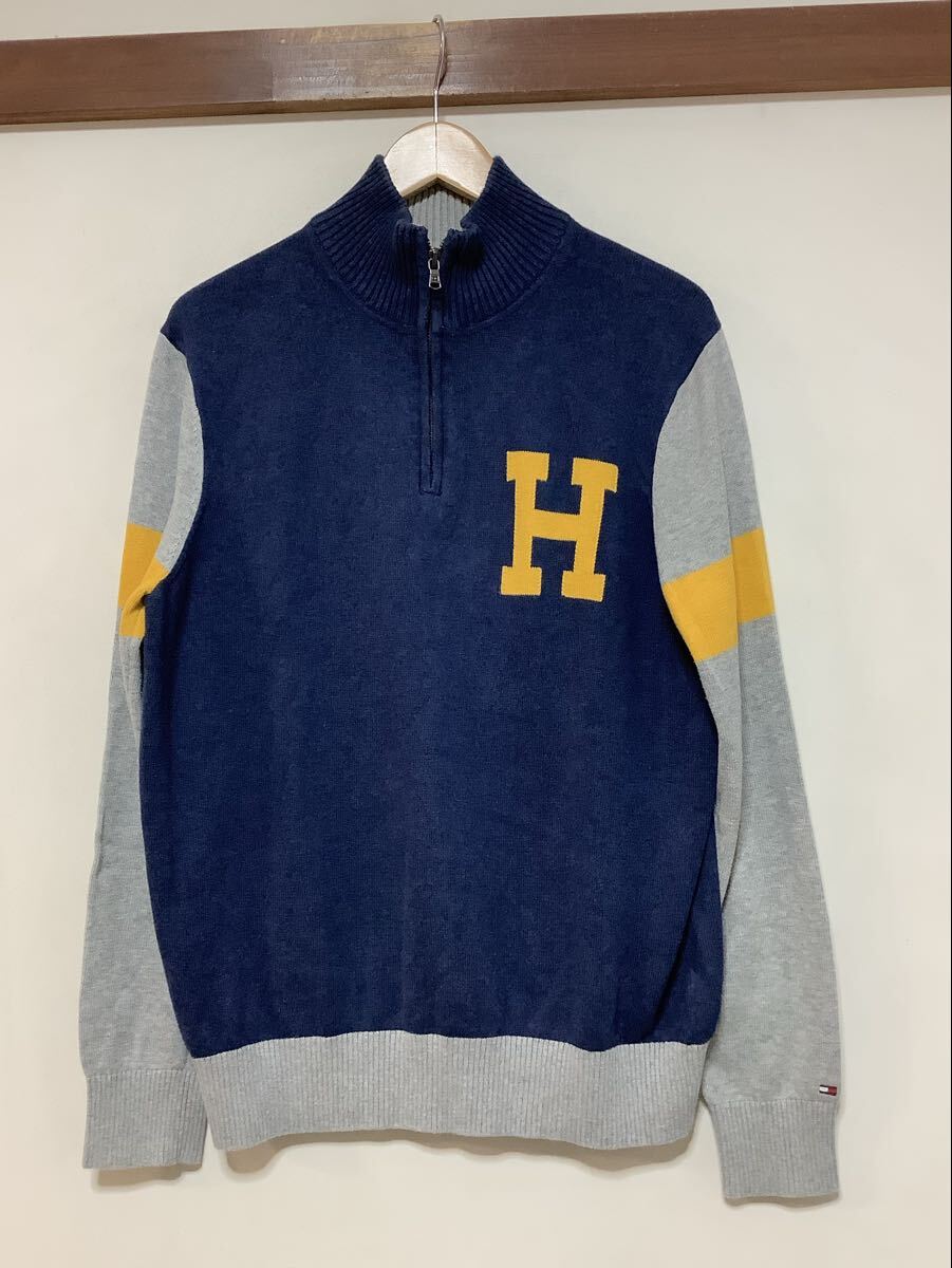 - つ1744 TOMMY HILFIGER トミーヒルフィガー ハーフジップ コットンニット L ネイビー/グレー