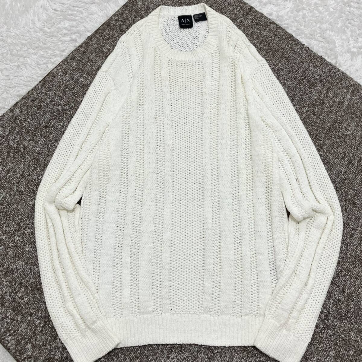 - 超希少185(2XL)◎!!アルマーニエクスチェンジ ARMANI EXCHANGE ニット セーター 長袖 ケーブル ワッフル 3D 凹凸 メンズ ビジネス 白 3L