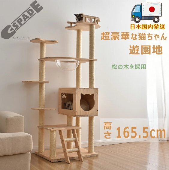 - 【国内発送】キャットタワー 透明宇宙船 頑丈 据え置き おしゃれキャットタワー木製可愛い麻紐 爪とぎボール猫ベッド 安全安心 ペット用品